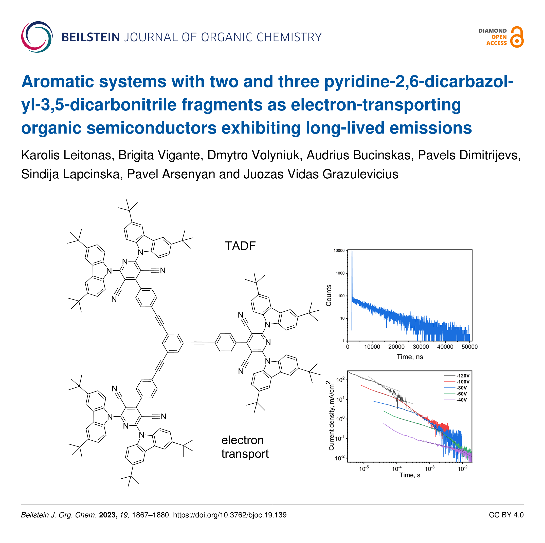 Leitonas, K.; Vigante, B.; Volyniuk, D.; Bucinskas, A.; Dimitrijevs, P.; Lapcinska, S.; Arsenyan, P.; Grazulevicius, J. V. Beilstein J. Org. Chem. 2023, 19, 1867–1880. doi:10.3762/bjoc.19.139