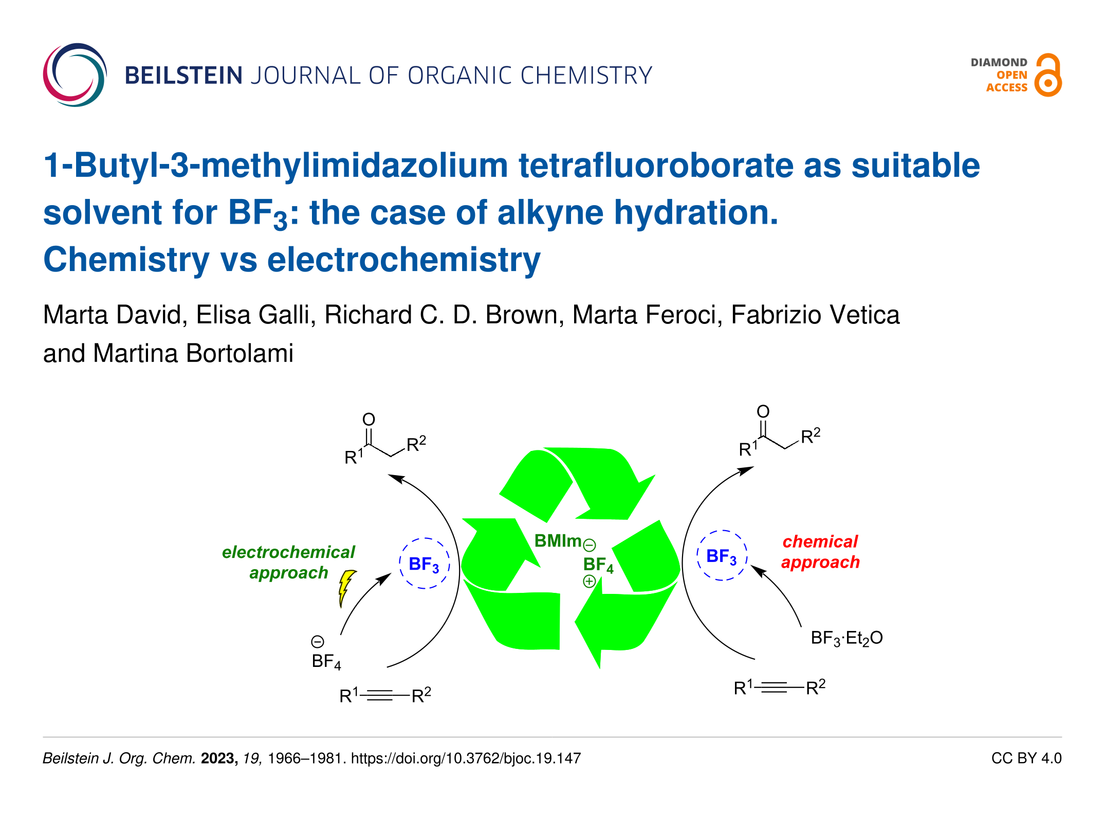 1-Butyl-3-methylimidazolium tetrafluoroborate as suitable solvent for BF3: the case of alkyne hydration. Chemistry vs electrochemistry