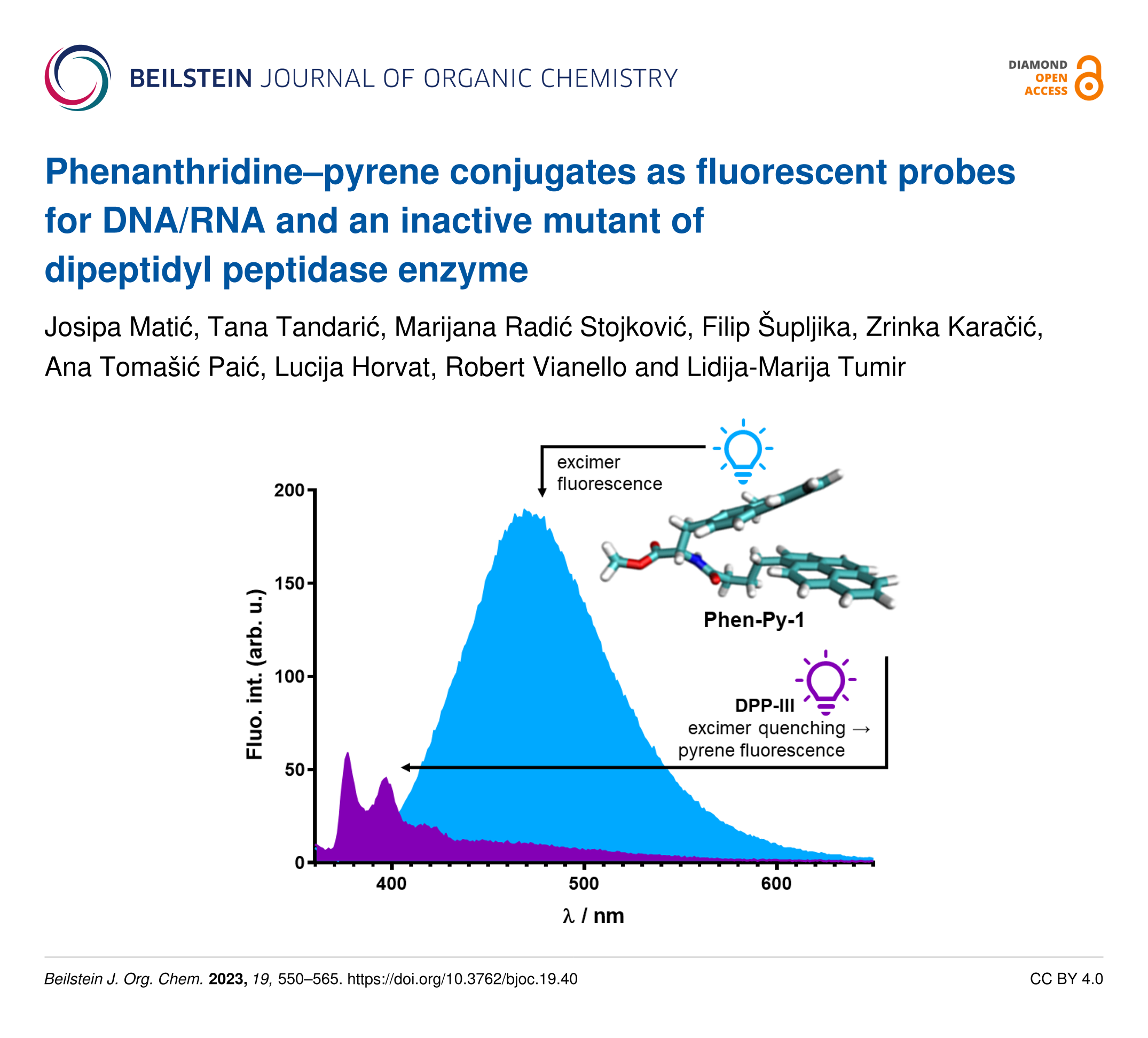 - Matić, J.; Piotrowski, P.; Vrban, L.; Kobetić, R.; Vianello, R.; Jurić, I.; Fabijanić, I.; Pernar Kovač, M.; Brozovic, A.; Piantanida, I.; Schmuck, C.; Radić Stojković, M. Distinctive Nucleic Acid Recognition by Lysine-Embedded Phenanthridine Peptides. International journal of molecular sciences 2024, 25, 4866. doi:10.3390/ijms25094866