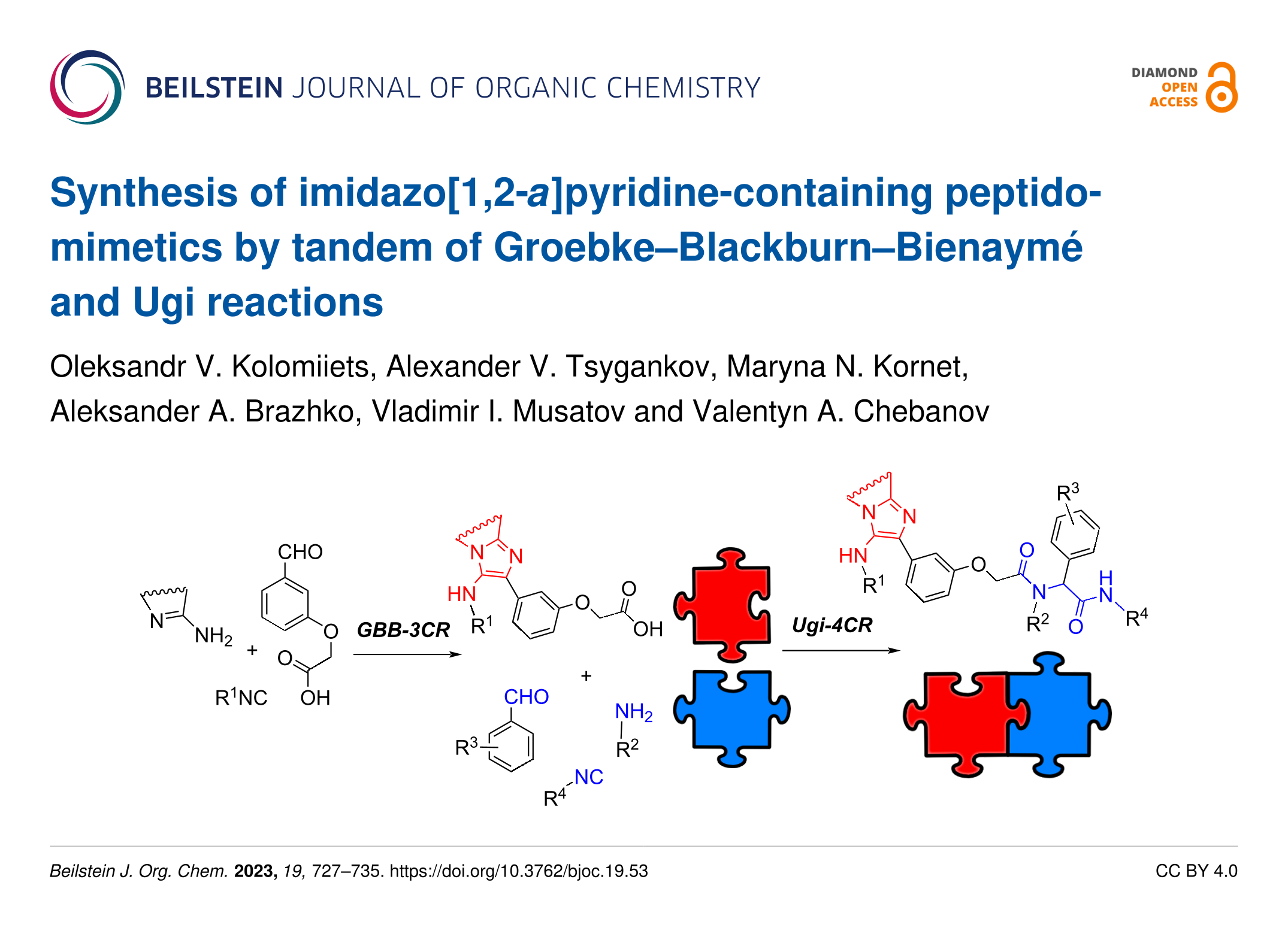 Kolomiiets, O. V.; Tsygankov, A. V.; Kornet, M. N.; Brazhko, A. A.; Musatov, V. I.; Chebanov, V. A. Beilstein J. Org. Chem. 2023, 19, 727–735. doi:10.3762/bjoc.19.53