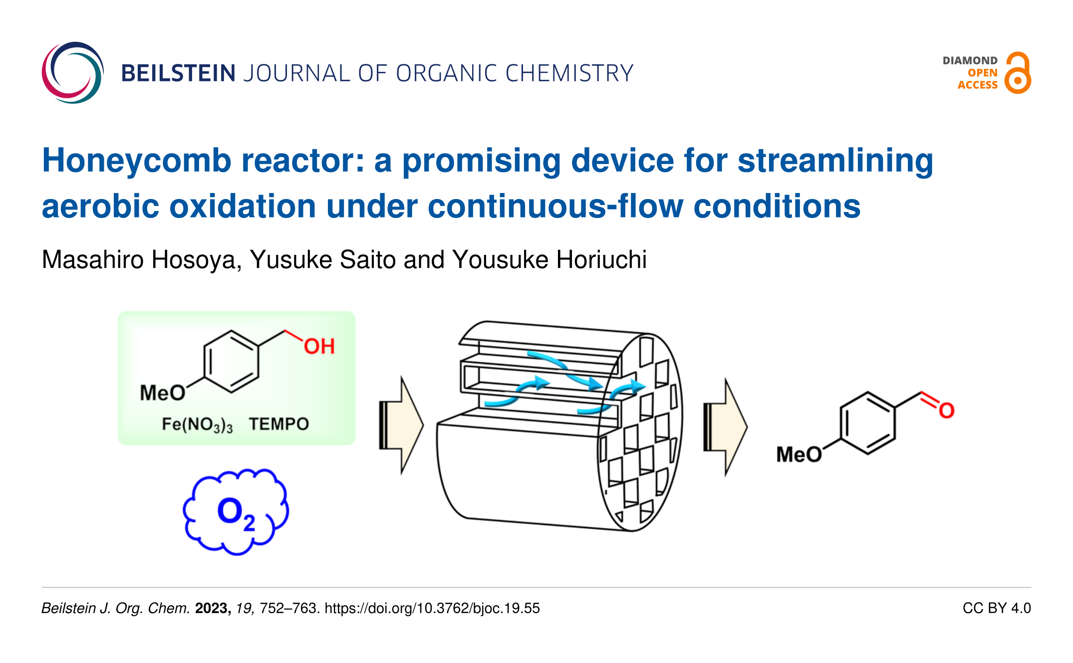 - Hosoya, M.; Saito, Y.; Horiuchi, Y. Honeycomb reactor: a promising device for streamlining aerobic oxidation under continuous-flow conditions. Beilstein journal of organic chemistry 2023, 19, 752–763. doi:10.3762/bjoc.19.55