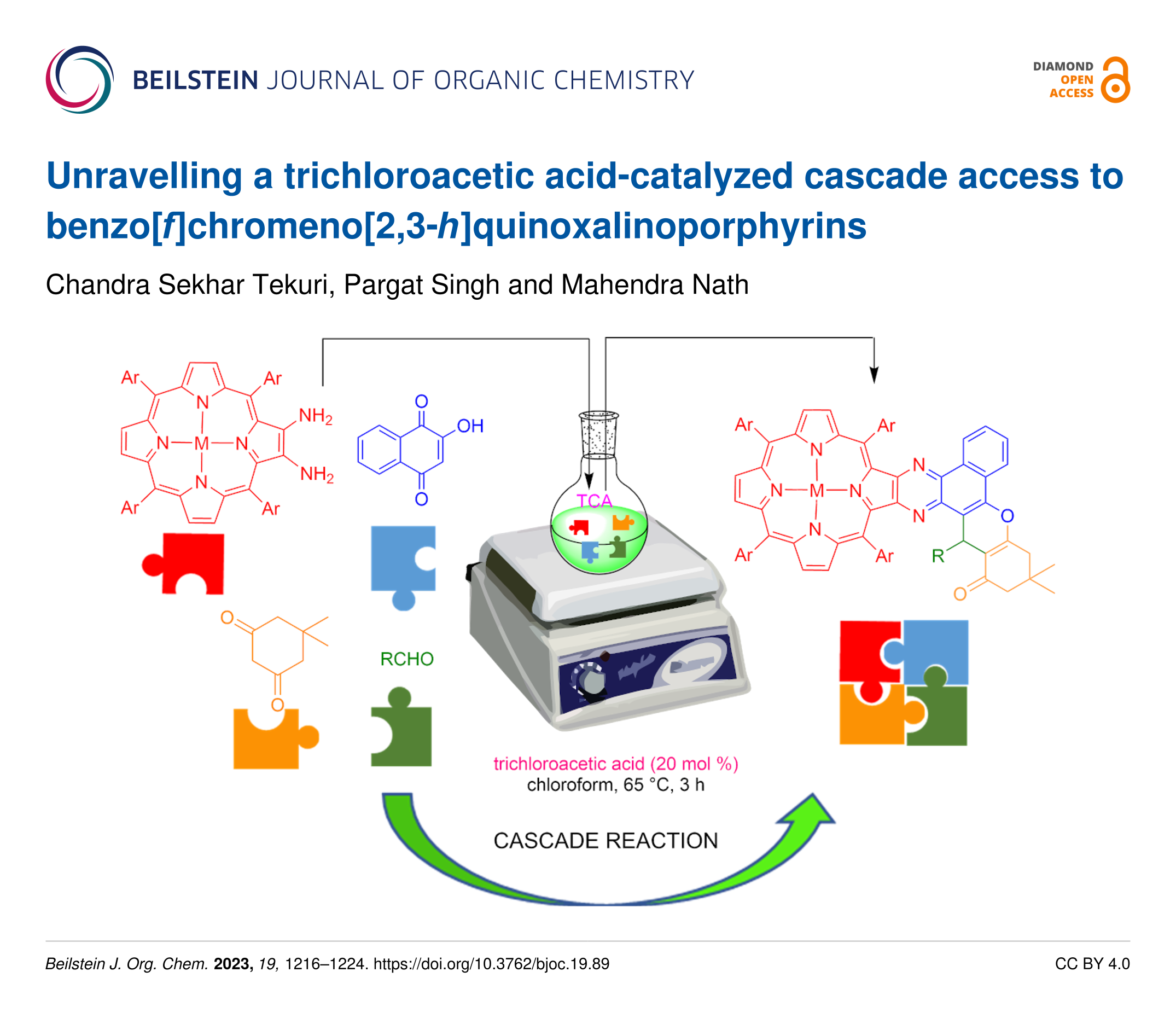 Unravelling a trichloroacetic acid-catalyzed cascade access to benzo[f]chromeno[2,3-h]quinoxalinoporphyrins