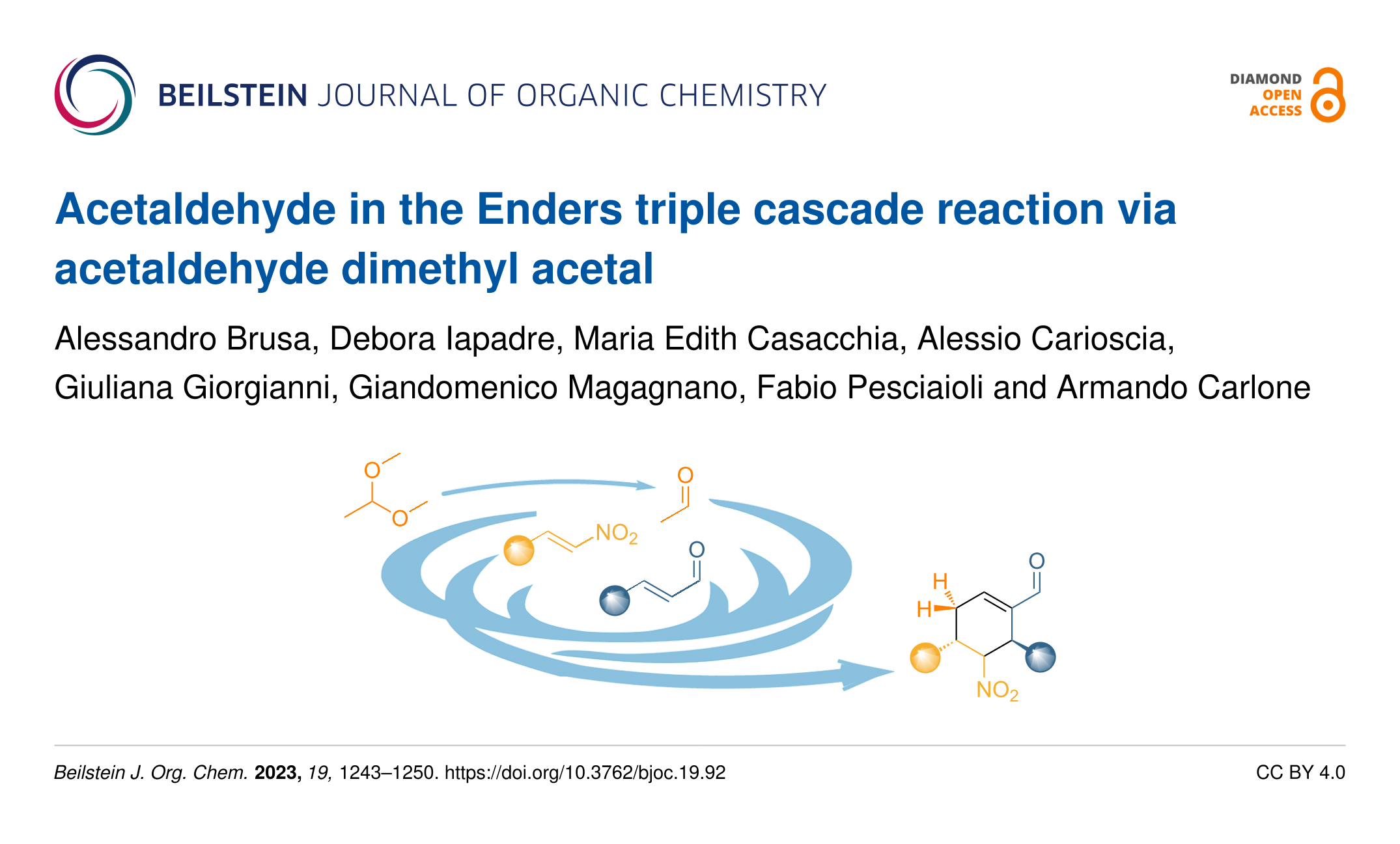 Brusa, A.; Iapadre, D.; Casacchia, M. E.; Carioscia, A.; Giorgianni, G.; Magagnano, G.; Pesciaioli, F.; Carlone, A. Beilstein J. Org. Chem. 2023, 19, 1243–1250. doi:10.3762/bjoc.19.92