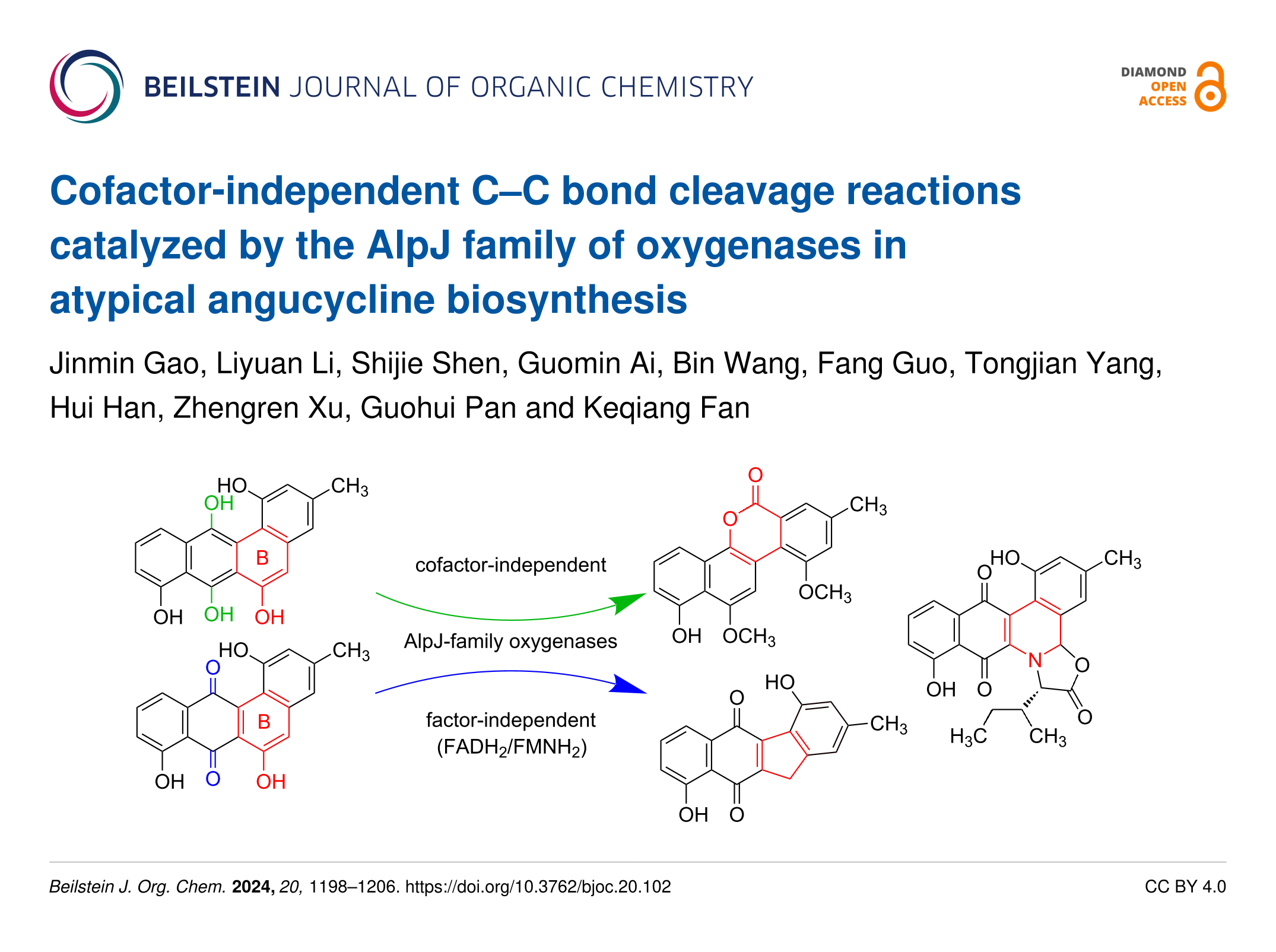 - Shen, S.; Chi, C.; Fan, K.; Zhang, Q.; Xu, Y.; Gao, J.; Hu, H.; Wang, L.; Yang, D.; Ma, M.; Pan, G. Functional Conservation and Divergence of AlpJ-Family Oxygenases Catalyzing C-C Bond Cleavage in Atypical Angucycline Biosynthesis. ACS chemical biology 2025, 20, 1481–1491. doi:10.1021/acschembio.5c00040