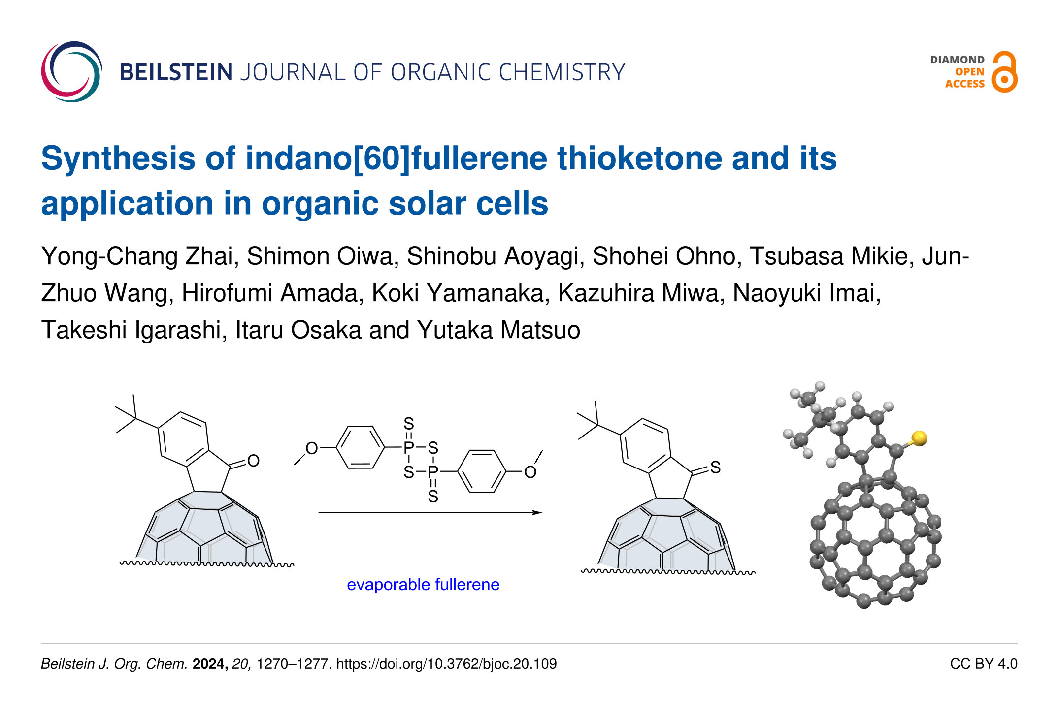 Zhai, Y.-C.; Oiwa, S.; Aoyagi, S.; Ohno, S.; Mikie, T.; Wang, J.-Z.; Amada, H.; Yamanaka, K.; Miwa, K.; Imai, N.; Igarashi, T.; Osaka, I.; Matsuo, Y. Beilstein J. Org. Chem. 2024, 20, 1270–1277. doi:10.3762/bjoc.20.109