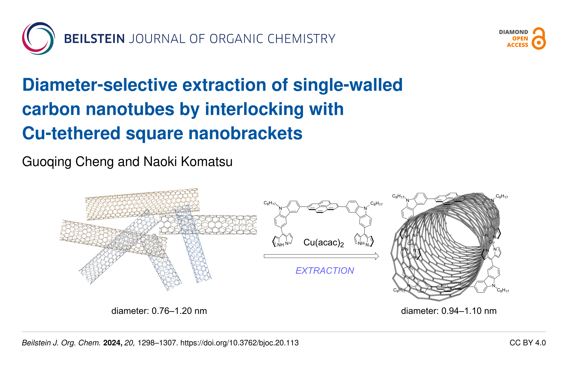 - Cheng, G.; Hayashi, T.; Fu, X.; Komatsu, N. Optical resolution of single-walled carbon nanotubes through wrapping with chiral metal coordination polymers followed by interlocking with metal-tethered tetragonal nanobrackets. Carbon 2025, 236, 120102. doi:10.1016/j.carbon.2025.120102