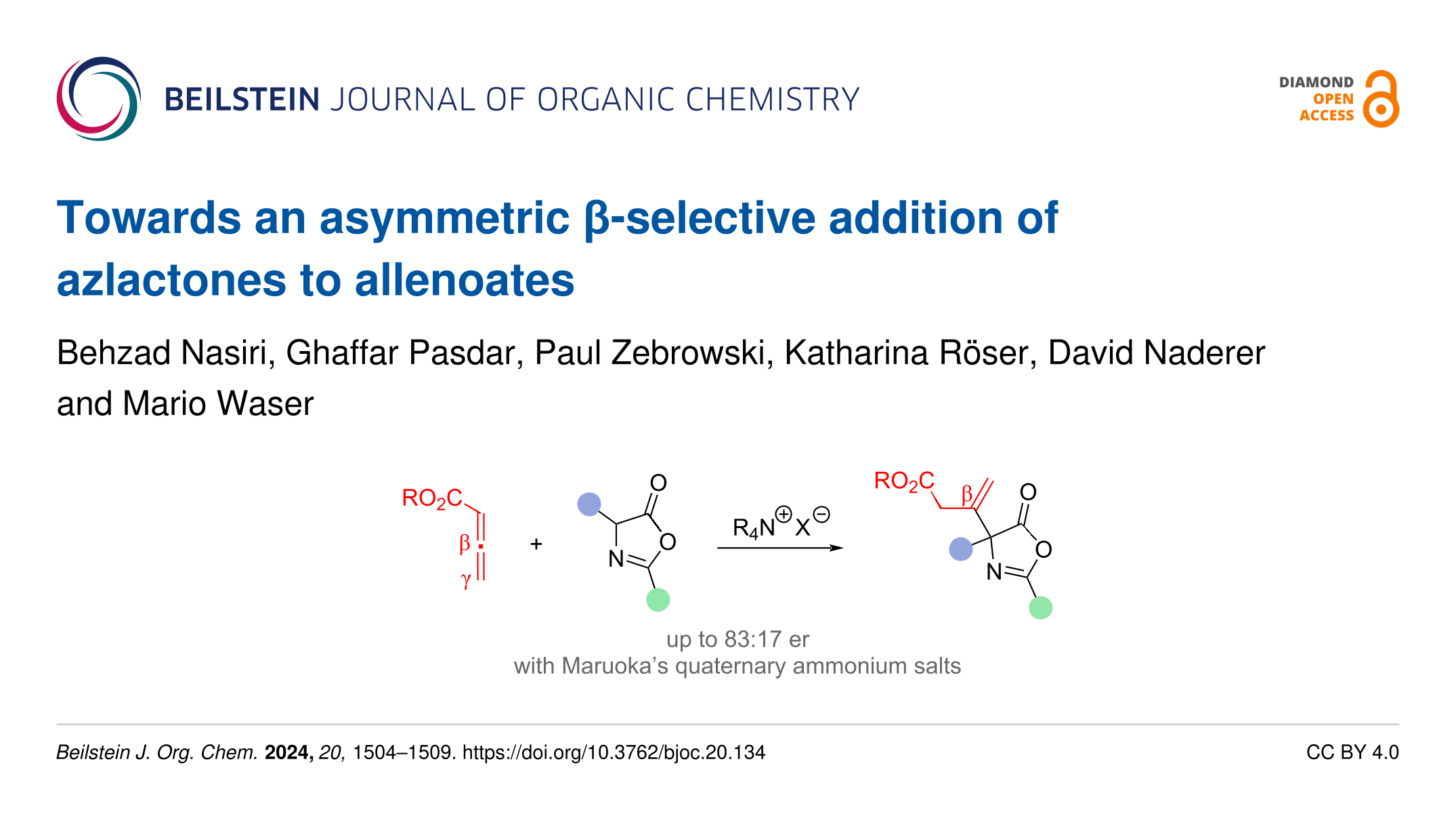 Nasiri, B.; Pasdar, G.; Zebrowski, P.; Röser, K.; Naderer, D.; Waser, M. Beilstein J. Org. Chem. 2024, 20, 1504–1509. doi:10.3762/bjoc.20.134