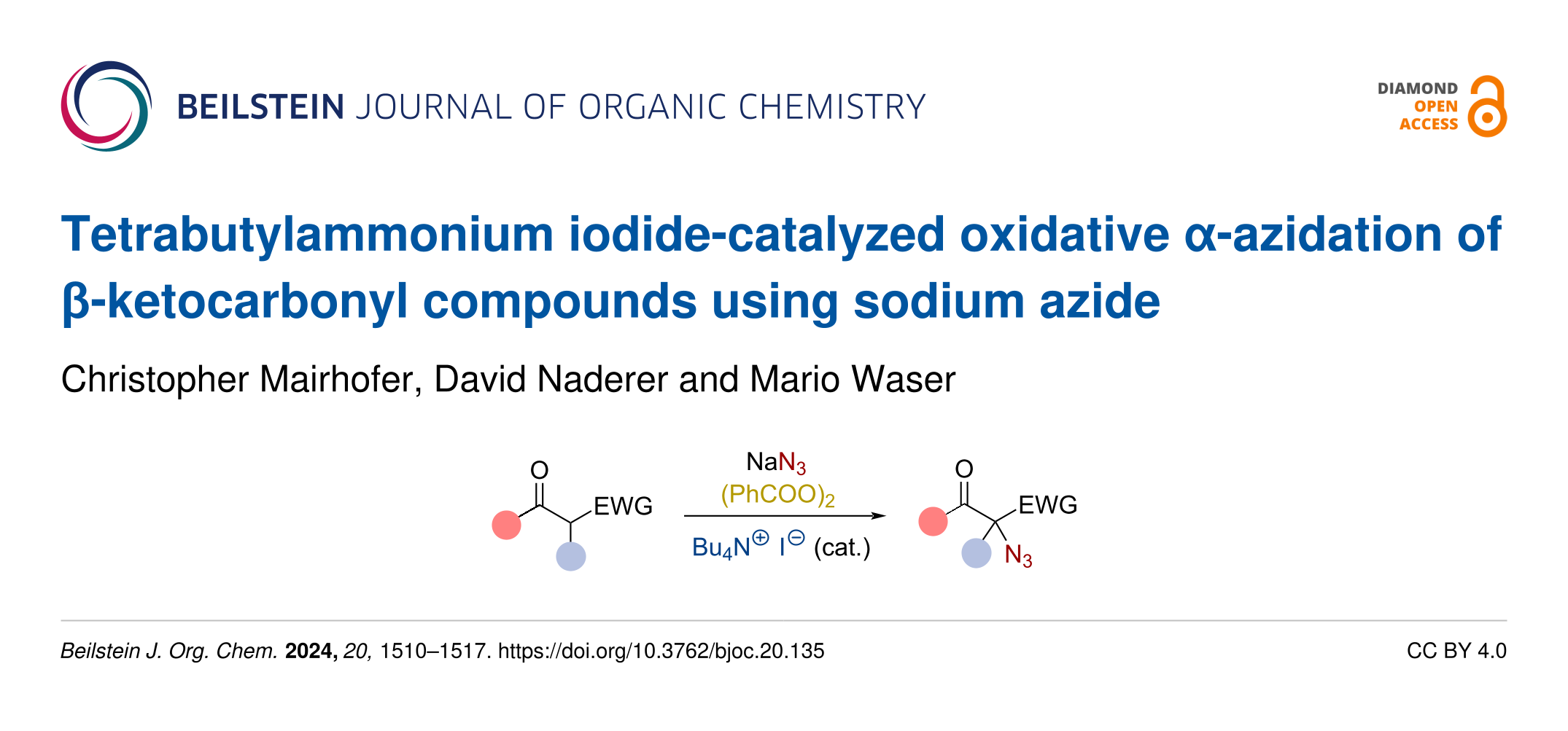 Mairhofer, C.; Naderer, D.; Waser, M. Beilstein J. Org. Chem. 2024, 20, 1510–1517. doi:10.3762/bjoc.20.135