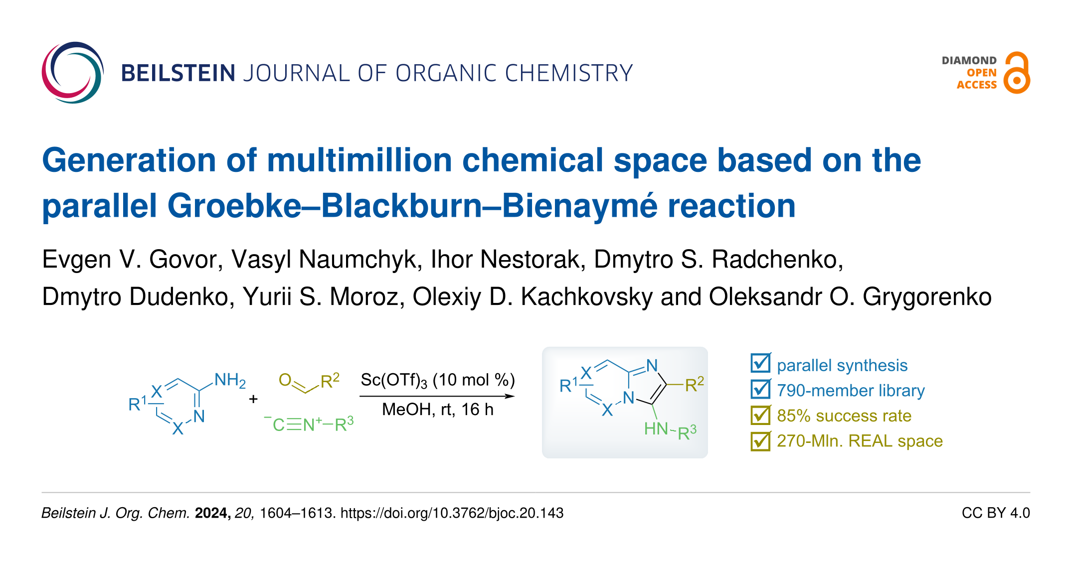 - Govor, E. V.; Dymura, S.; Viniichuk, O.; Naumchyk, V.; Zhemera, A.; Radchenko, D. S.; Grygorenko, O. O. Generating multimillion chemical space based on the Ugi four-center three-component reaction with oxocarboxylic acids. Molecular diversity 2025. doi:10.1007/s11030-025-11410-4