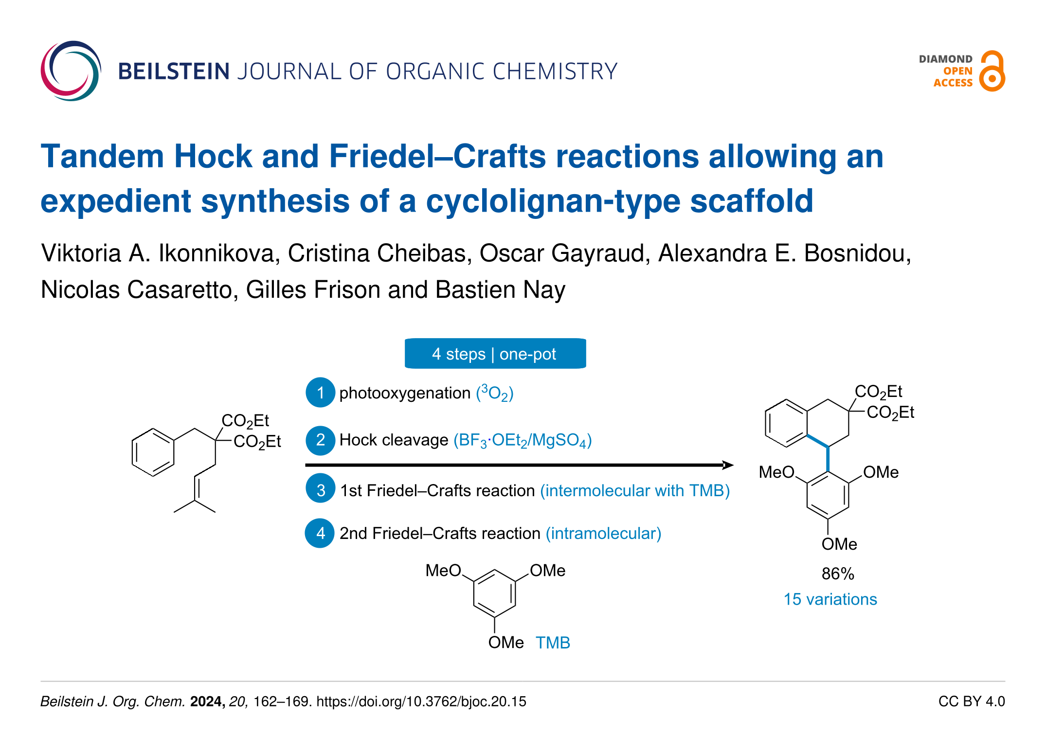 Tandem Hock and Friedel–Crafts reactions allowing an expedient synthesis of a cyclolignan-type scaffold