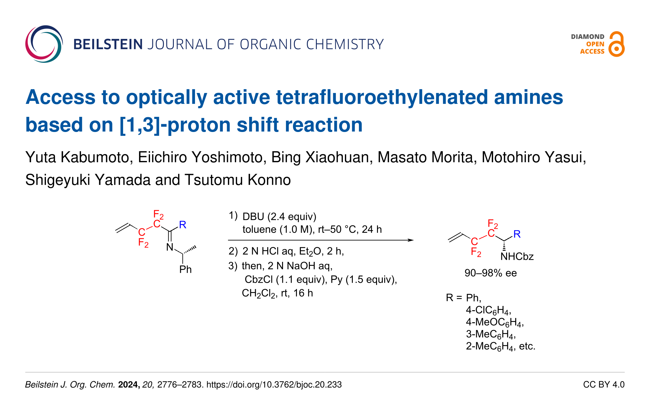 Kabumoto, Y.; Yoshimoto, E.; Xiaohuan, B.; Morita, M.; Yasui, M.; Yamada, S.; Konno, T. Beilstein J. Org. Chem. 2024, 20, 2776–2783. doi:10.3762/bjoc.20.233