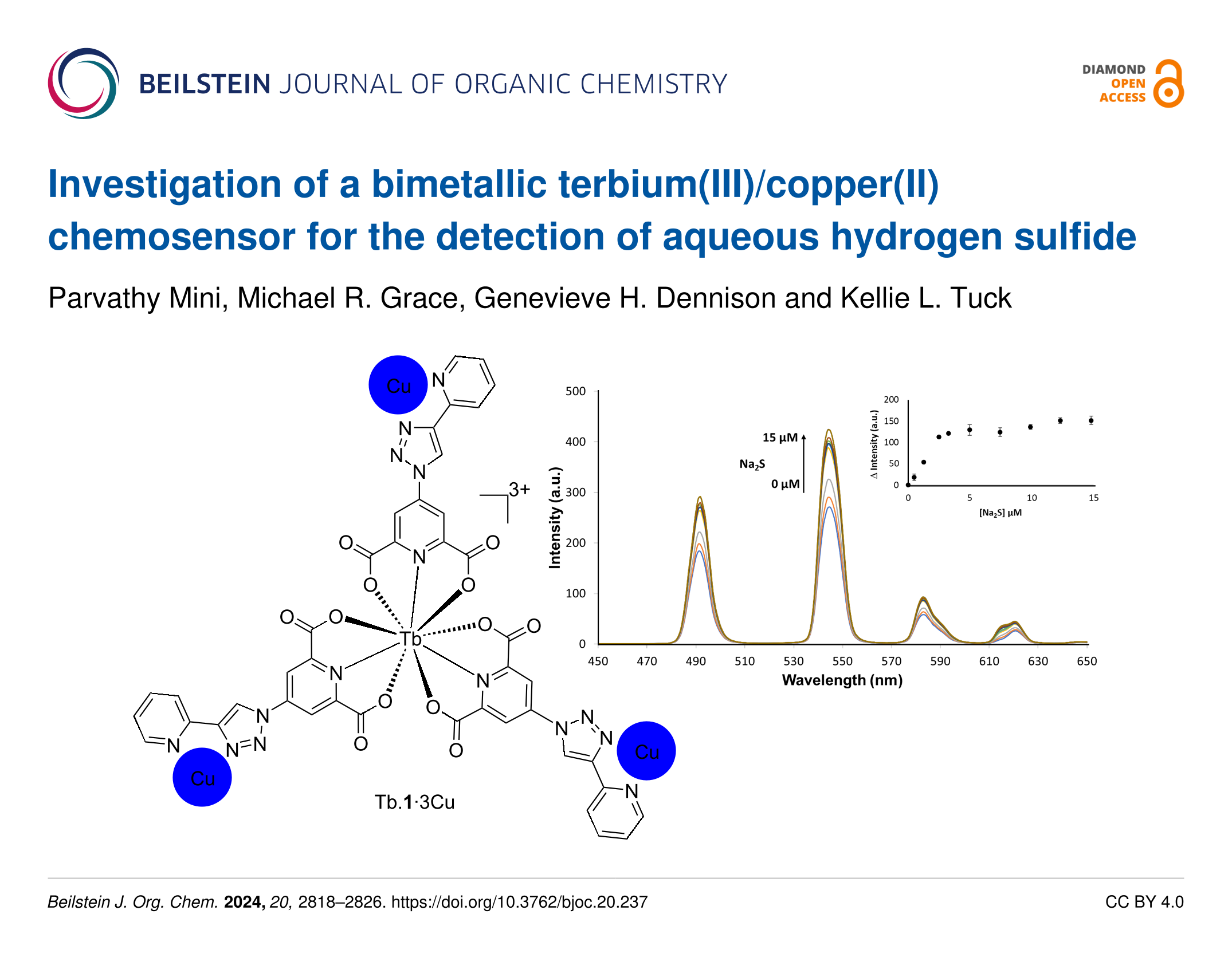 Investigation of a bimetallic terbium(III)/copper(II) chemosensor for the detection of aqueous hydrogen sulfide
