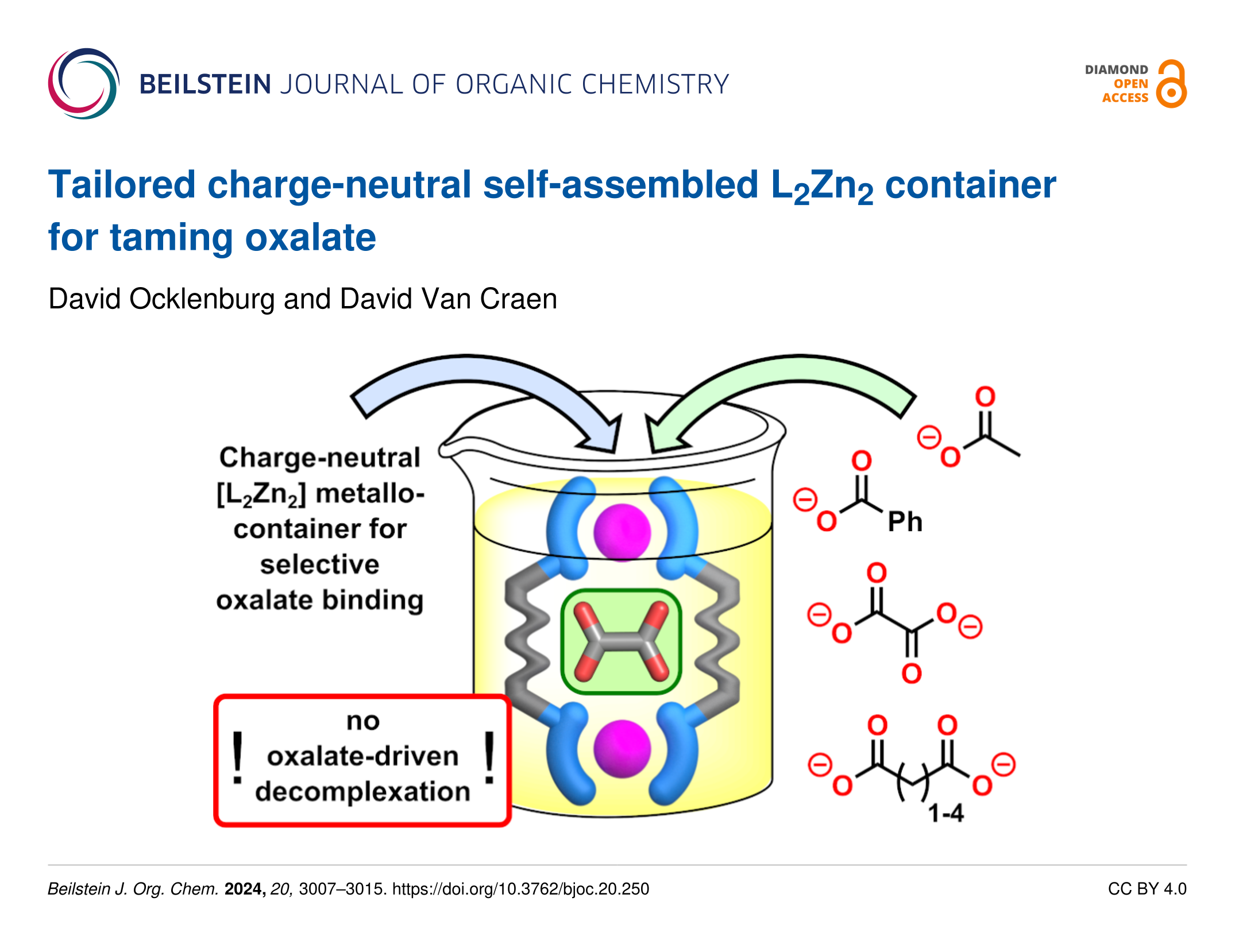 Tailored charge-neutral self-assembled L2Zn2 container for taming oxalate