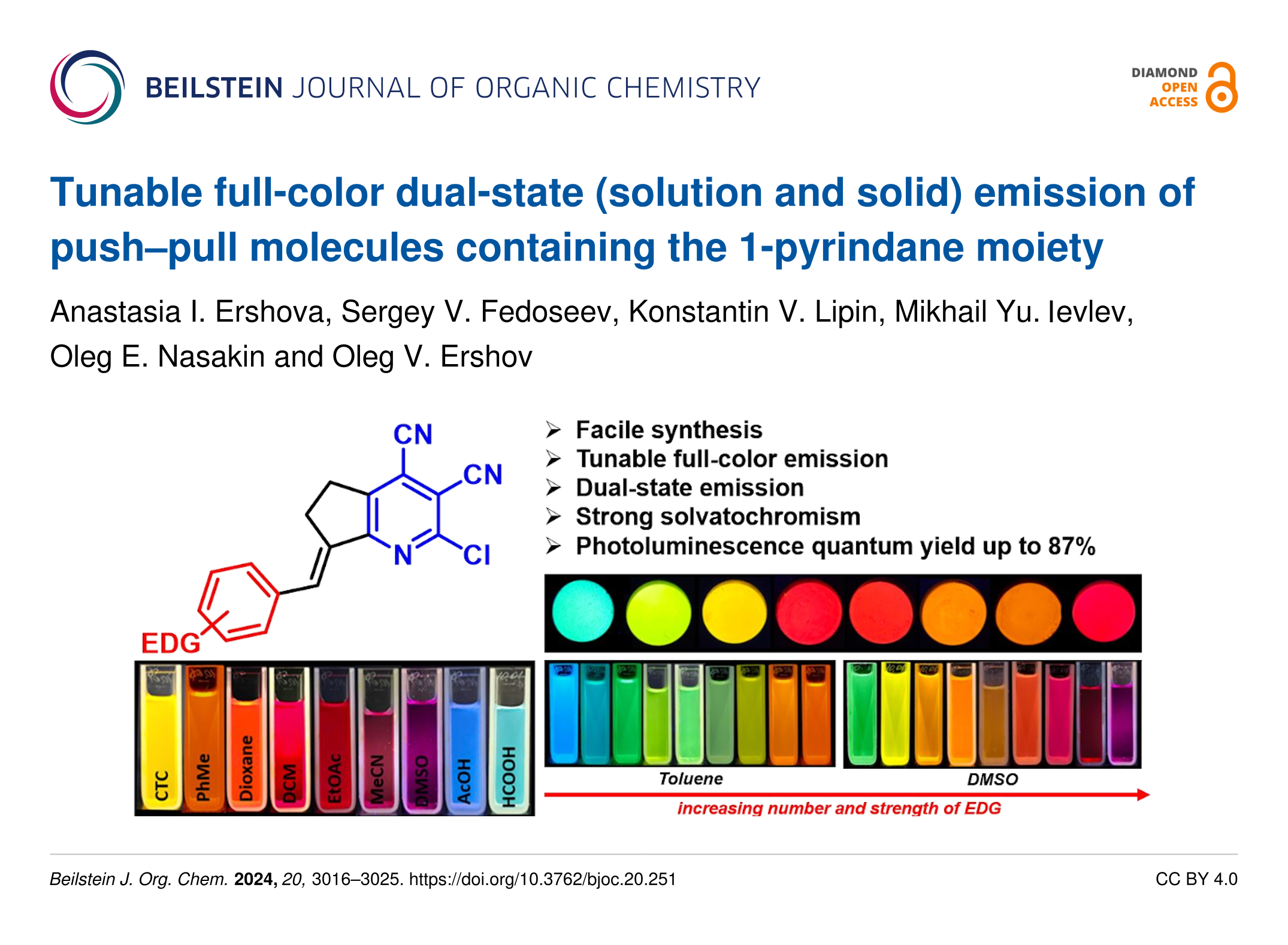 - Kayukov, Y. S.; Tuktin, P. I.; Ershova, A. I.; Ershov, O. V. Synthesis Based on Tetracyanopropenides and Vilsmeier Reagent and Photophysical Properties of Highly Functionalized Pyridines. Russian Journal of General Chemistry 2025, 95, 1476–1482. doi:10.1134/s1070363225601747