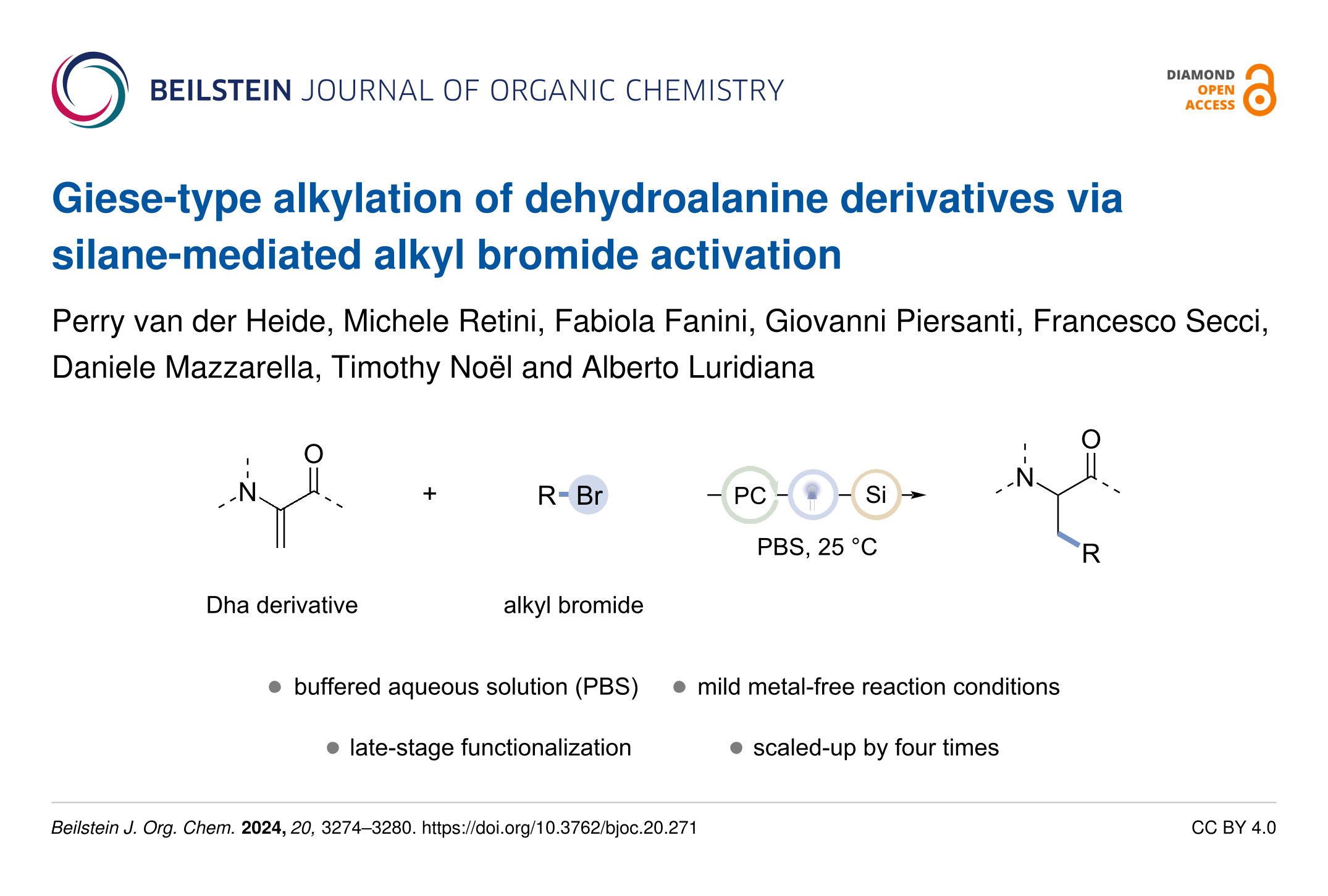van der Heide, P.; Retini, M.; Fanini, F.; Piersanti, G.; Secci, F.; Mazzarella, D.; Noël, T.; Luridiana, A. Beilstein J. Org. Chem. 2024, 20, 3274–3280. doi:10.3762/bjoc.20.271
