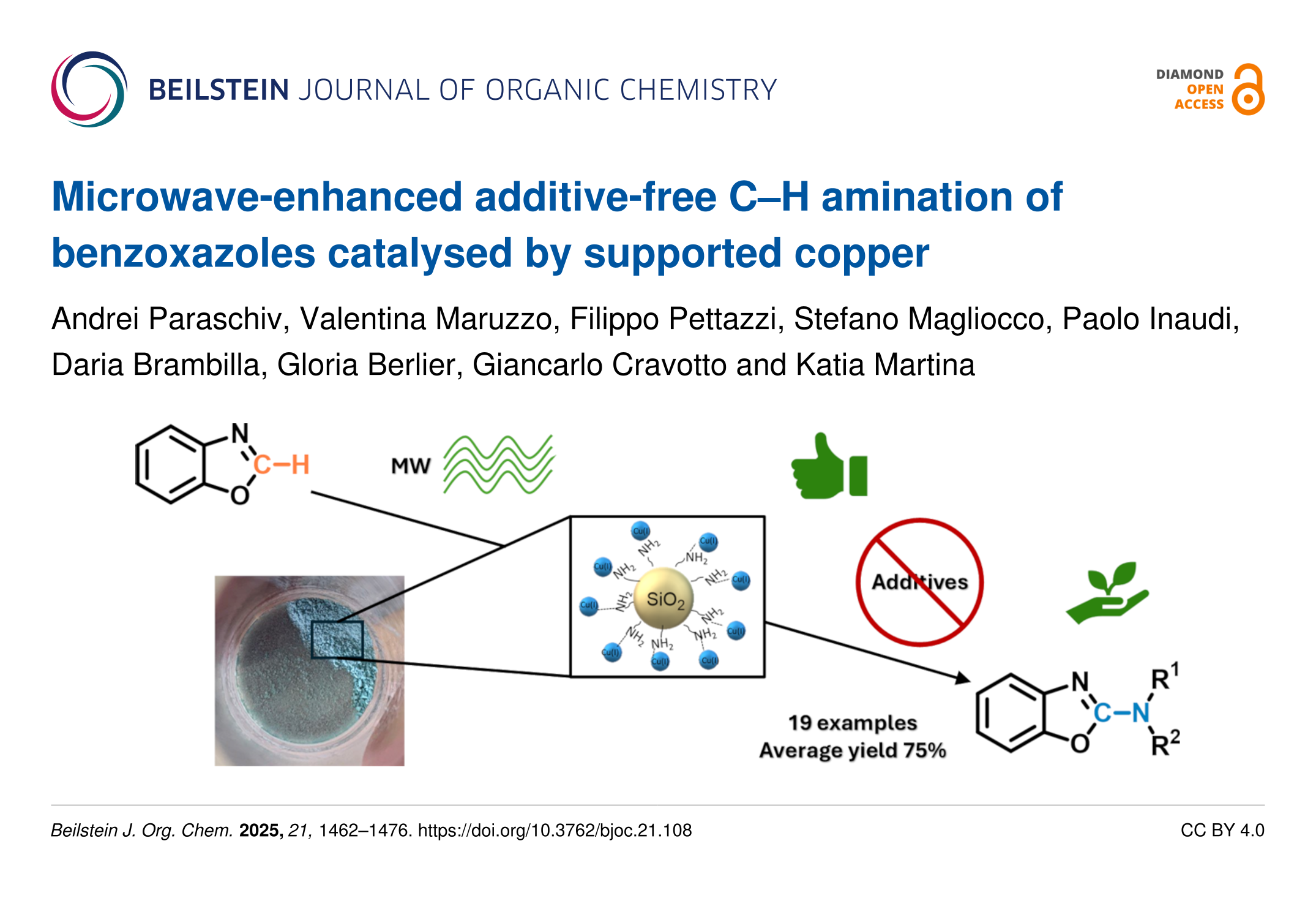 Paraschiv, A.; Maruzzo, V.; Pettazzi, F.; Magliocco, S.; Inaudi, P.; Brambilla, D.; Berlier, G.; Cravotto, G.; Martina, K. Beilstein J. Org. Chem. 2025, 21, 1462–1476. doi:10.3762/bjoc.21.108