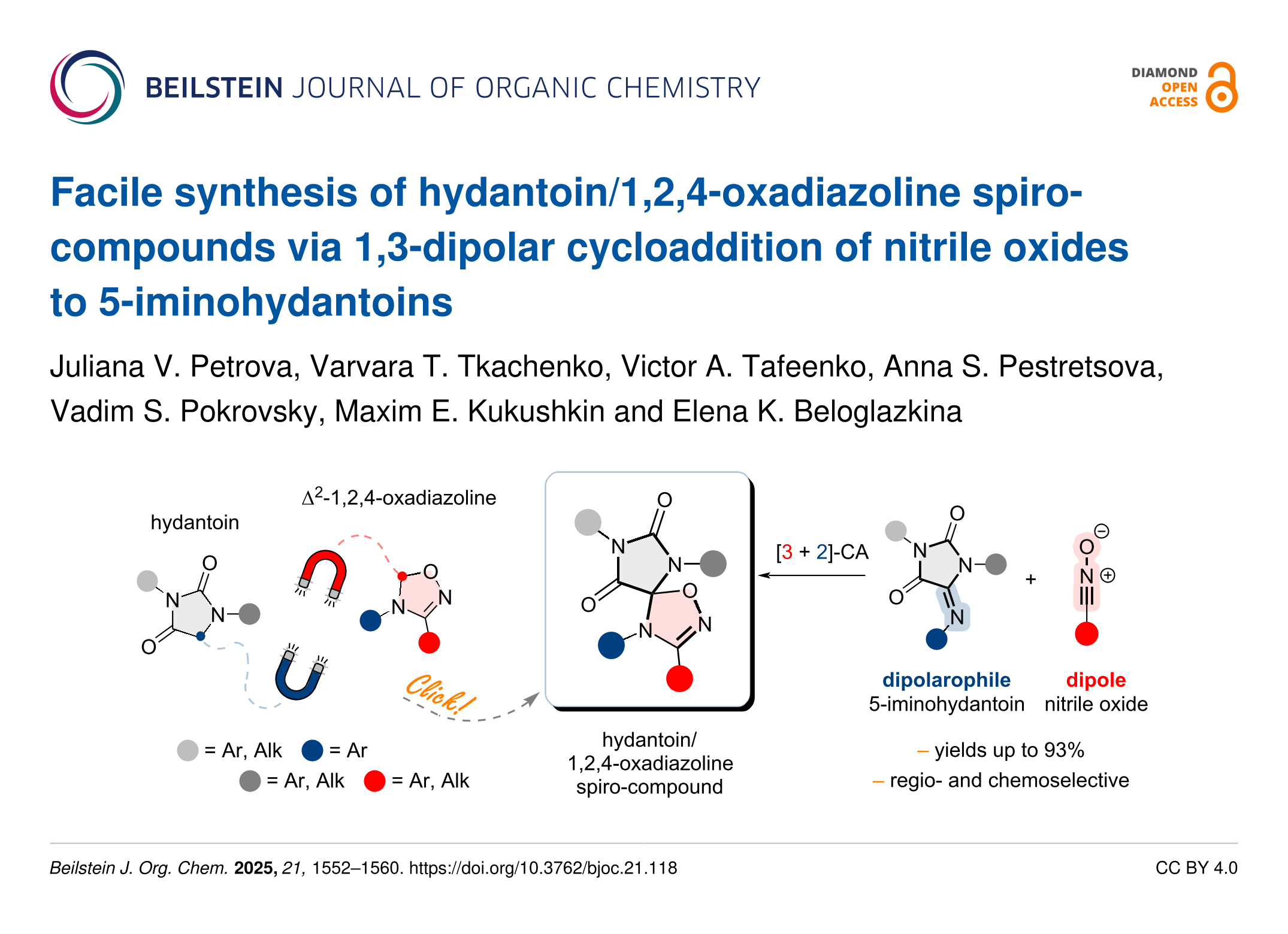 - Petrova, J. V.; Kukushkin, M. E.; Beloglazkina, E. K. 1,3-Dipolar Cycloaddition of Nitrile Imines and Nitrile Oxides to Exocyclic C=N Bonds-An Approach to Spiro-N-Heterocycles. International journal of molecular sciences 2025, 26, 8673. doi:10.3390/ijms26178673