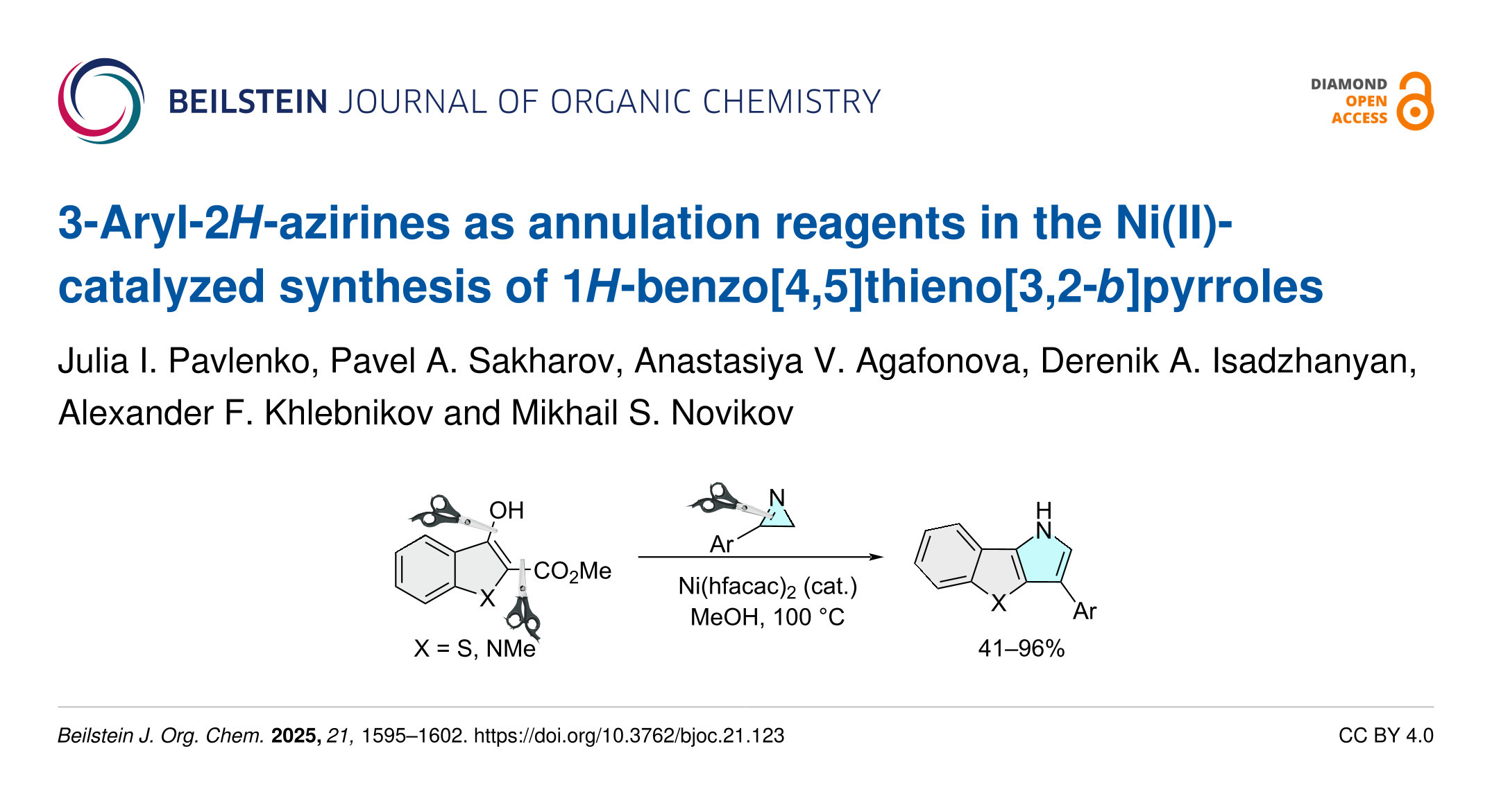 Pavlenko, J. I.; Sakharov, P. A.; Agafonova, A. V.; Isadzhanyan, D. A.; Khlebnikov, A. F.; Novikov, M. S. Beilstein J. Org. Chem. 2025, 21, 1595–1602. doi:10.3762/bjoc.21.123