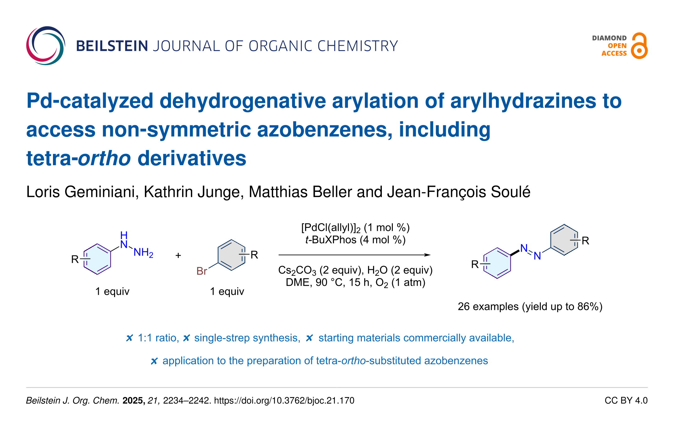 Pd-catalyzed dehydrogenative arylation of arylhydrazines to access non-symmetric azobenzenes, including tetra-ortho derivatives