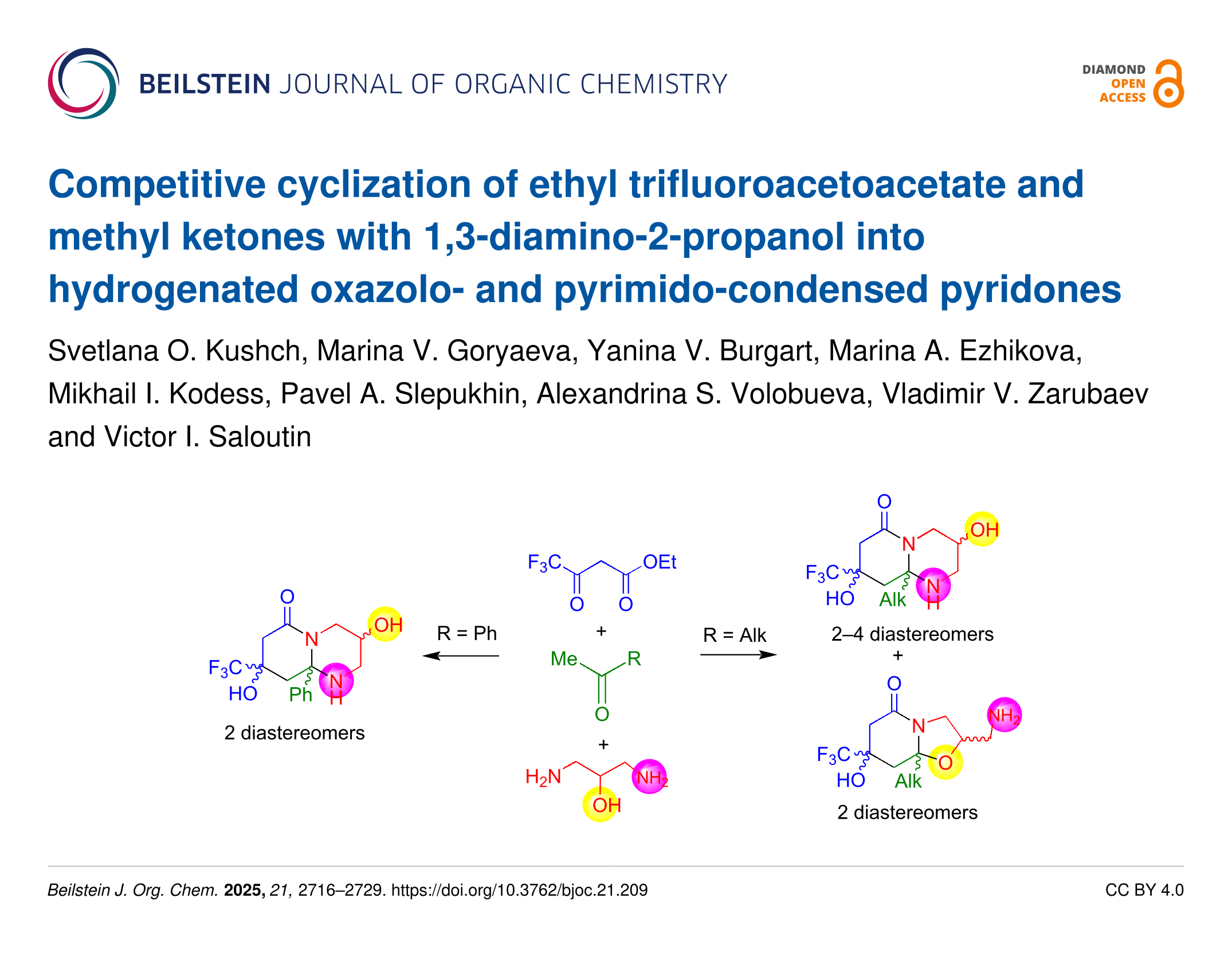 Kushch, S. O.; Goryaeva, M. V.; Burgart, Y. V.; Ezhikova, M. A.; Kodess, M. I.; Slepukhin, P. A.; Volobueva, A. S.; Zarubaev, V. V.; Saloutin, V. I. Beilstein J. Org. Chem. 2025, 21, 2716–2729. doi:10.3762/bjoc.21.209