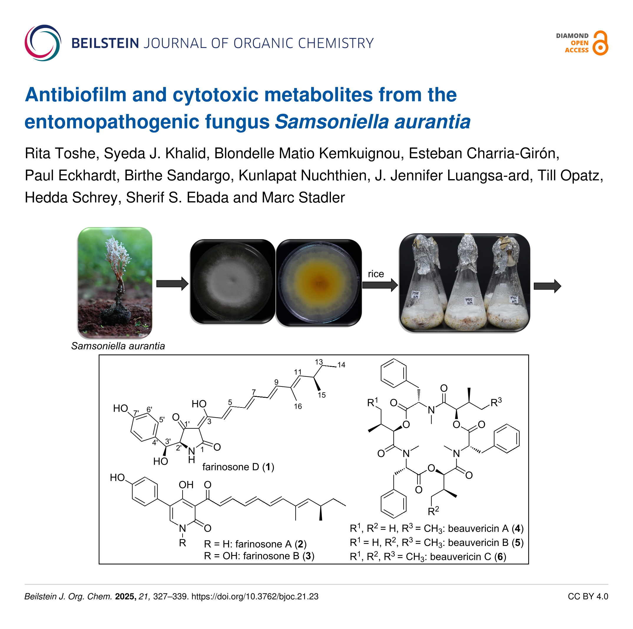 Toshe, R.; Khalid, S. J.; Kemkuignou, B. M.; Charria-Girón, E.; Eckhardt, P.; Sandargo, B.; Nuchthien, K.; Luangsa-ard, J. J.; Opatz, T.; Schrey, H.; Ebada, S. S.; Stadler, M. Beilstein J. Org. Chem. 2025, 21, 327–339. doi:10.3762/bjoc.21.23