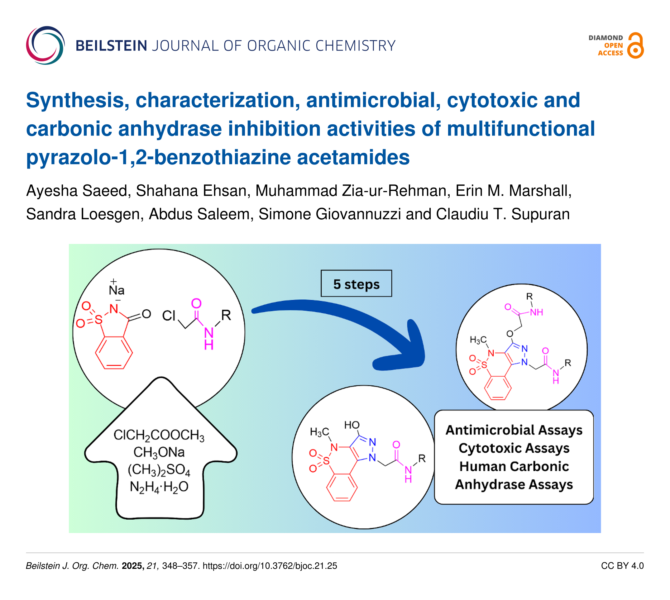 Saeed, A.; Ehsan, S.; Zia-ur-Rehman, M.; Marshall, E. M.; Loesgen, S.; Saleem, A.; Giovannuzzi, S.; Supuran, C. T. Beilstein J. Org. Chem. 2025, 21, 348–357. doi:10.3762/bjoc.21.25