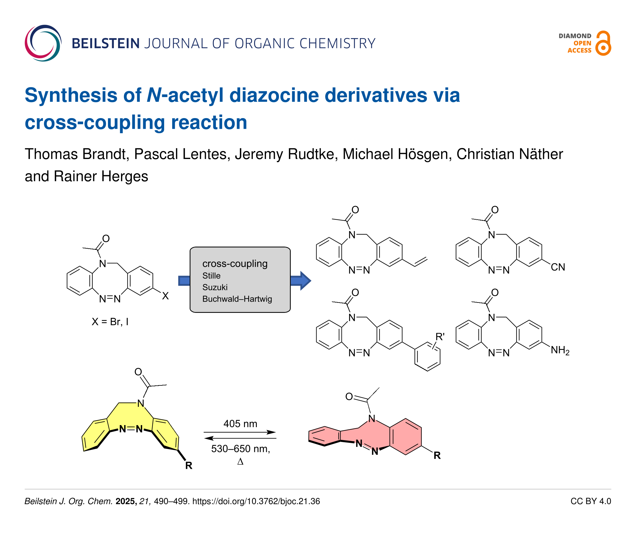 Brandt, T.; Lentes, P.; Rudtke, J.; Hösgen, M.; Näther, C.; Herges, R. Beilstein J. Org. Chem. 2025, 21, 490–499. doi:10.3762/bjoc.21.36