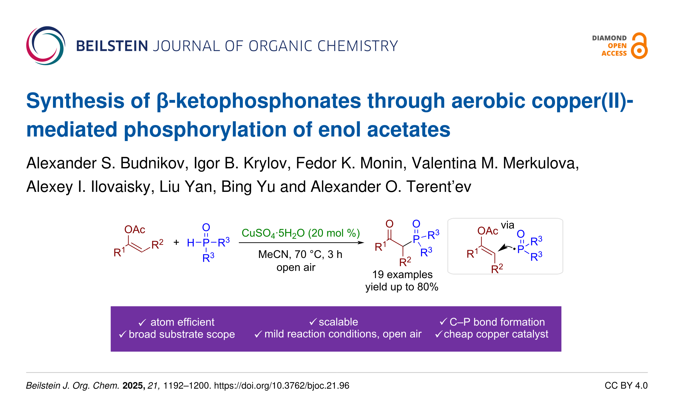 Budnikov, A. S.; Krylov, I. B.; Monin, F. K.; Merkulova, V. M.; Ilovaisky, A. I.; Yan, L.; Yu, B.; Terent’ev, A. O. Beilstein J. Org. Chem. 2025, 21, 1192–1200. doi:10.3762/bjoc.21.96