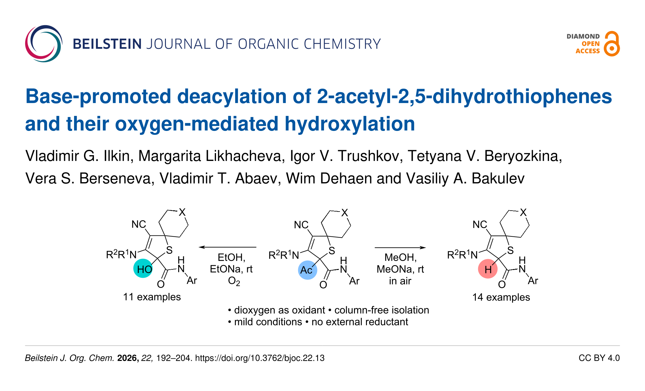 Ilkin, V. G.; Likhacheva, M.; Trushkov, I. V.; Beryozkina, T. V.; Berseneva, V. S.; Abaev, V. T.; Dehaen, W.; Bakulev, V. A. Beilstein J. Org. Chem. 2026, 22, 192–204. doi:10.3762/bjoc.22.13