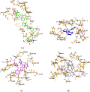 Figure 4: Illustration of binding poses of selected inhibitors for the ENPP1 homology model: (a): suramin, (b...