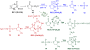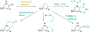 Scheme 1: Case study of a complex synthesis, parallel reactions. 10 possible synthesis STMs in green, other 1...