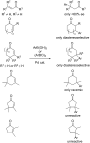 Scheme 17: ARCM of 185 and 187 promoted by 184 to form the encumbered alkenes 186 and 188.