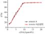 • curve. Once again, the binding curve measured in this manner was amplified relative to the known nanomolar binding constant for the interaction. When three times the reaction time was used for the placement reaction (12 cycles), the binding curve was amplified out of the window. In this case, no signal
