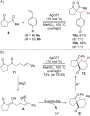 Scheme 7: Selected examples of inter- (A) and intramolecular (B) olefin hydroalkylations promoted by a silver...