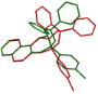 Figure 2: Superposition of the skeletons of boronate complexes 8 (red) and 10 (green).