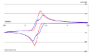Figure 2: Cyclic voltammograms in DMF of 8/4 (red) and 21/11 (blue). Current plotted vs V (relative to Fc/Fc+...