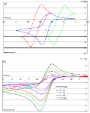 Figure 3: Cyclic voltammograms in DMF of 8/4 (red), 6/1 (green) and 22/9 (blue). Current plotted vs V relativ...