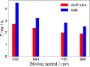 Figure 4: Red channel values of ROIs with different stirring speeds: (a) left space between reactor and draft...