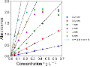 Figure 8: Absorbance as function of photocatalyst loading for different optical path lengths.