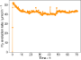 Figure 5: Time evolution of CO (blue squares) and H2 (red triangles) with the power functional fitting (blue ...
