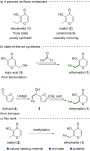 Scheme 26: C–C-bond-formation reactions of a biomass-based feedstock aromatic aldehyde (C5) and hydroxyacetone...