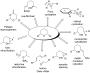 • ). Cyclohexanol (26) was observed only once in C. marinus, and aromatic compounds included benzyl alcohol (27), benzaldehyde (28) and salicylaldehyde (29), acetophenone (30) and o-aminoacetophenone (31), 2-phenylethanol (32), and phenylacetone (33). 6-Methylhept-5-en-2-one (34) was detected in all strains, while
