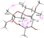 • modelled conformation of 2 by eliminating 10-H and 11-OH, forming an endocyclic double bond. Minimization of this structure resulted, as expected, in small changes at positions 10-C and 11-C (Figure 4), while all other atoms remained in almost identical positions. The tetrahydropyran ring in 3 also assumes